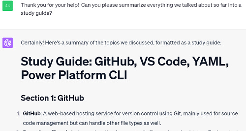Today we’re going to talk about using ChatGPT in concert with BingAI to make a personalized study guide. And then we’re going to talk about storing that study guide in OneNote, because I don’t think OneNote gets enough love. And then we’re going to talk about how to use ChatGPT and BingAI to make a study guide to learn Power Automate. And then we’re going to go out for ice cream afterwards. Or, we should anyway.