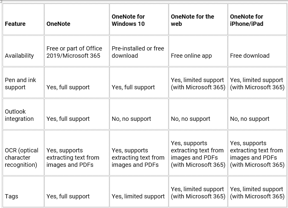 Okay, now that we’re all hyped up, let’s discuss the fact that there might be more than one version of OneNote. And, guess who helped me make a nice table to discuss it? That’s right, BingAI.